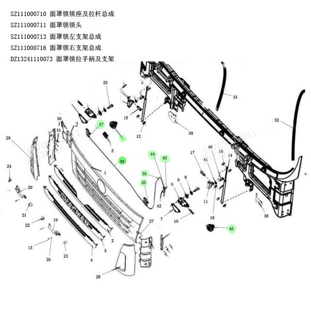 MZS-XLBF3 面罩鎖總成 Mask lock assembly SHACMAN F3000 Cab radiator mask parts