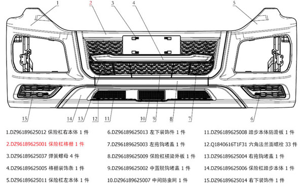 DZ96189625001 保險杠格柵 Bumper grille SHACMAN M3000S Truck cab bumper parts